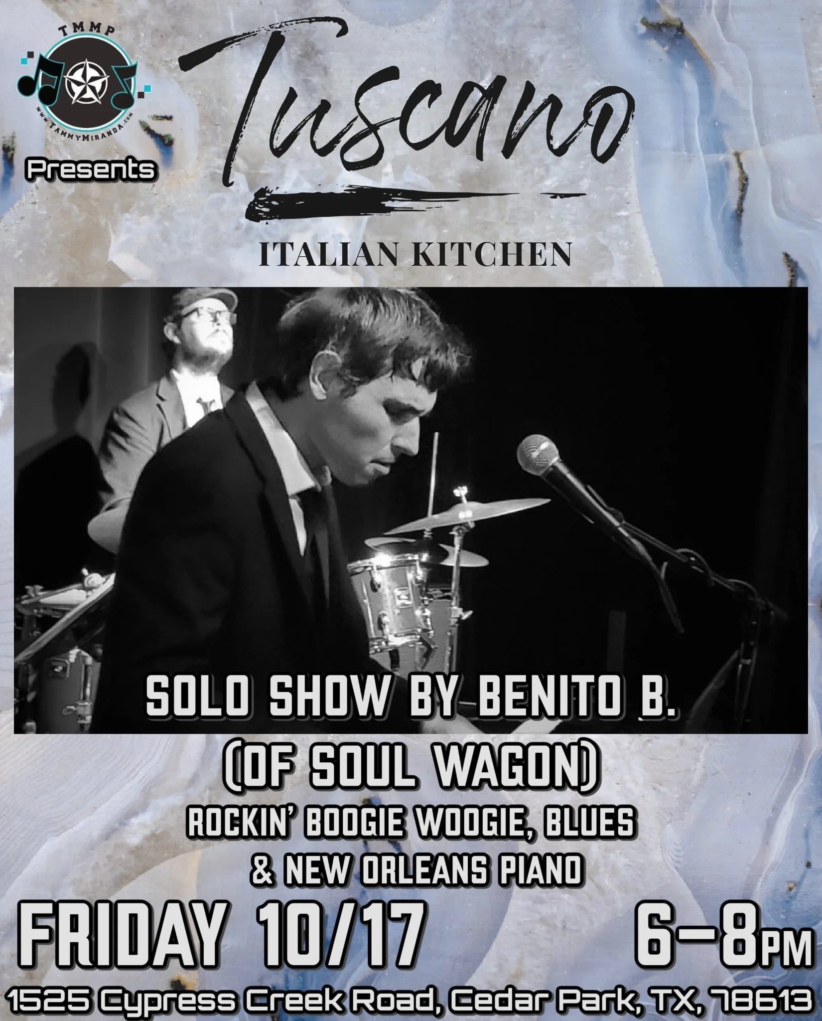 “Benito is a prominent figure in the Austin, Texas jazz, blues and roots scene. He leads the band Soul Wagon, which is well regarded for its performances that blend jazz, blues, and American roots music. Benito is noted for his lyrical piano style and versatile performances, ranging from the Great American Jazz Songbook to more upbeat swing, boogie-woogie, and blues tunes. Soul Wagon, under Benito’s leadership, has been performing across Central Texas and the broader South and Southwest regions for over a decade. Their music is known to create a vibrant and engaging atmosphere, earning them rave reviews from clients and event planners. Benito and his band have also been involved in notable collaborations and performances with esteemed musicians, such as Grammy Award-winning drummer Ernie Durawa. Their ability to cater to different moods and settings, whether for a lively party or a more intimate gathering, has solidified their reputation in the local music community.”